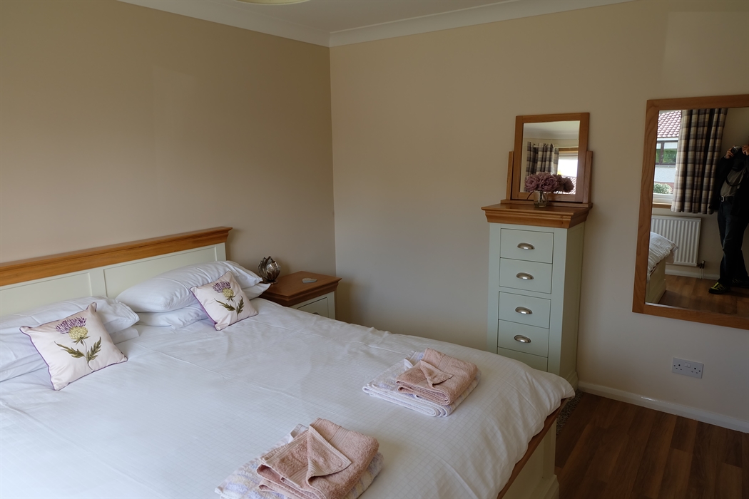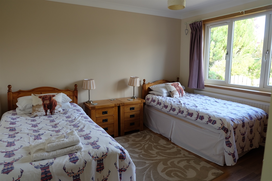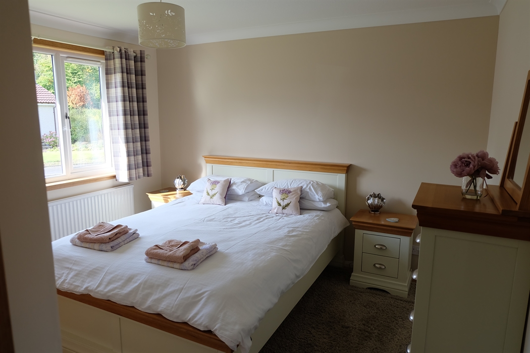 2 double bedroom cottage which has recently been refurbished. Amtico floors throughout, new kitchen and bathroom and new double glazing. Solid oak furniture throughout the house. It has all mod cons, wi-fi, dishwasher, washing machine, tumble dryer, microwave and cooker and hob. It is located in a quiet cul de sac just off the Golf Course Road, where the prestigious championship Blairgowrie Golf course is located. The bedrooms consist of one king size bed in one bedroom and two single beds in the second bedroom. There is a separate dining room. The lounge has a beautiful large window opening onto the front garden, where you can sometimes see rabbits and red squirrels. There is a smart TV with a DVD player incorporated into the TV. We allow one friendly dog and the back garden is enclosed. You can walk to a couple of lochs from the house and also you can walk around the golf course which is very close to the house. There is also horseriding and the famous Cateran trail closeby which begins in Blairgowrie, which in total is a 103km long trail, but you can obviously just do a part of it. About 12 miles away is Dunkeld and 23 miles away is Pitlochry. There is much wildlife nearby including hares, red squirrels, deer, beavers and various birds of prey such as Ospreys and buzzards. The Hermitage Centre is about a 20 minute drive which has impressive waterfalls and walks. At the right time of year, you can see salmon leaping up the wild waterfalls. There is a large river running through the middle of Blairgowrie and a number of good restaurants as well as large supermarkets.