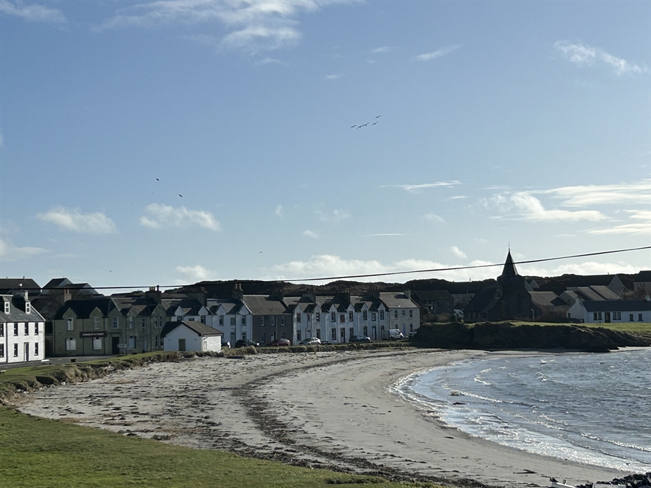 Situated centrally in the village, across the street from the village green and beach, the cottage offers accommodation for up to 6 adults plus baby, for stays of 2 nights upwards. Rates range from £730 for 2 or 3 nights to £1285 for 6 or 7 nights. There are 3 bedrooms and 2 bathrooms. It is close to the village shops, restaurants, pubs & hotels and at the start of the coastal paths to Port Ellen, Laphroaig, Lagavullin & Ardbeg distilleries, all within easy walking distance. To the rear is a large private terraced sunny walled garden. Parking on the street is free and there is a private gated parking space for the sole use of guests to the rear of the walled garden.
