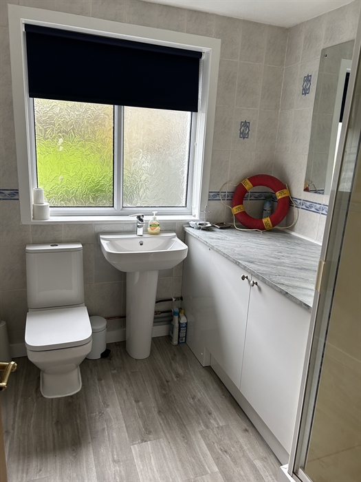 The bathroom has been refurbished with an electric shower cubicle, toilet and wash hand basin.