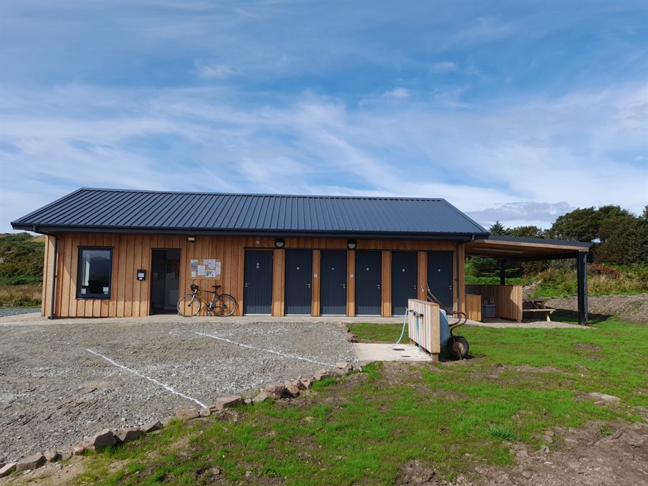 The Isle of Gigha Camp and Motorhome site is a small site close to the ferry slip that welcomes motorhomes, campervans and tents. The camping area has a wilderness feel about it with 17 tent pitches separated by bracken, long grass and wild flowers. The campervan and motorhome area provides 10 level pitches with hardstanding bays and grass to one side, all including free electric hook-up.