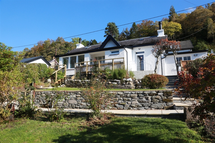 To the front of the cottage is the patio area with a path leading down to the garden which is built on three terraces. The views across the loch to the far hills are stunning at any time of year, and sunsets are a delight.