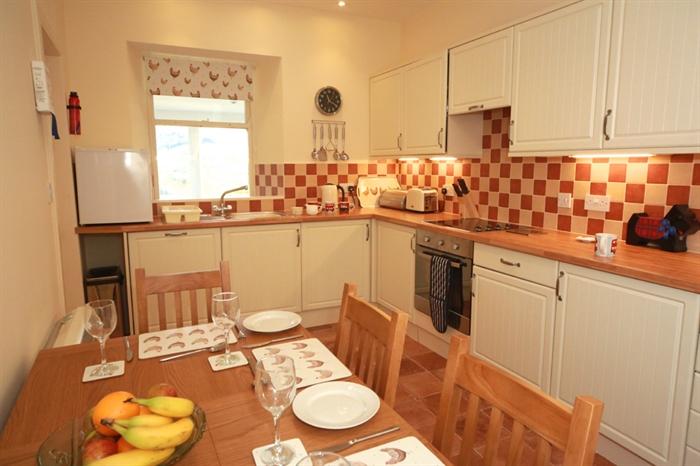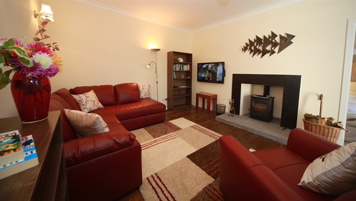 The heart of the cottage is the spacious lounge. Who wouldn’t enjoy the special effect that a wood burning stove adds to a lounge? The modern touch of a large wall mounted TV with Freeview makes for a cosy space to socialise and relax.