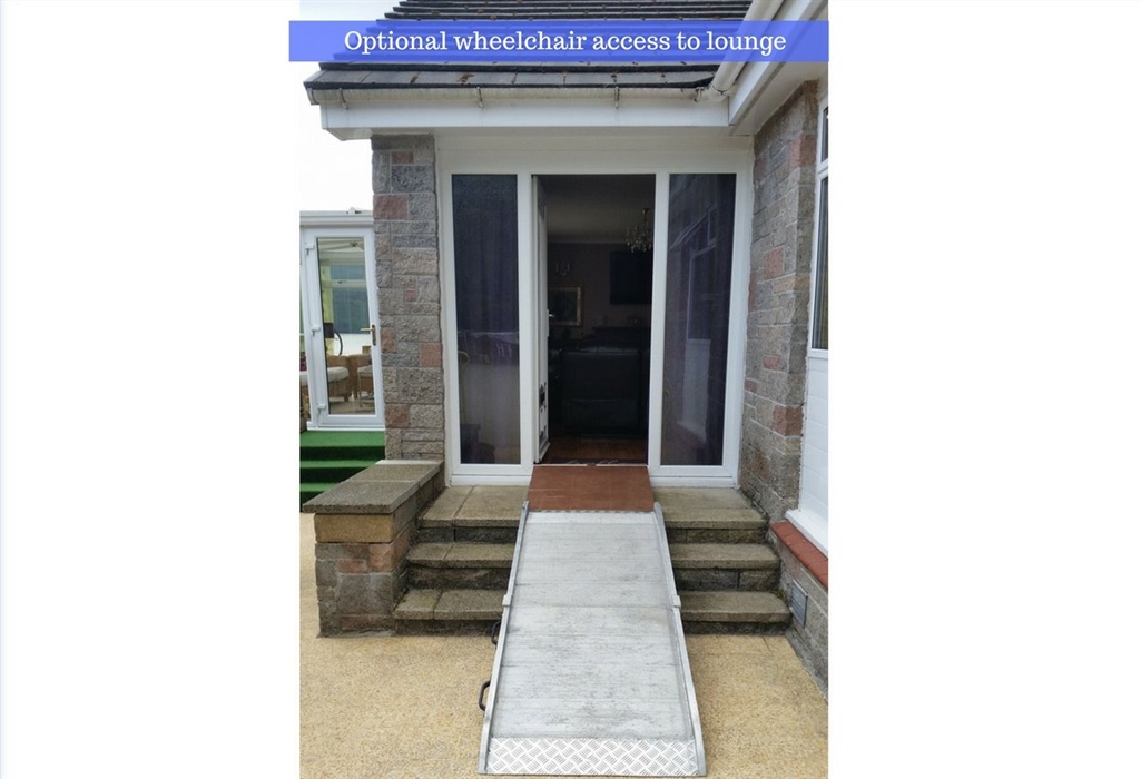 Sloping ramp access from the parking area to the patio level surrounding the home. Optional ramp from patio to the lounge – see image in gallery. Wet room shower access – 24 inches wide, fold down seat – see image in gallery.