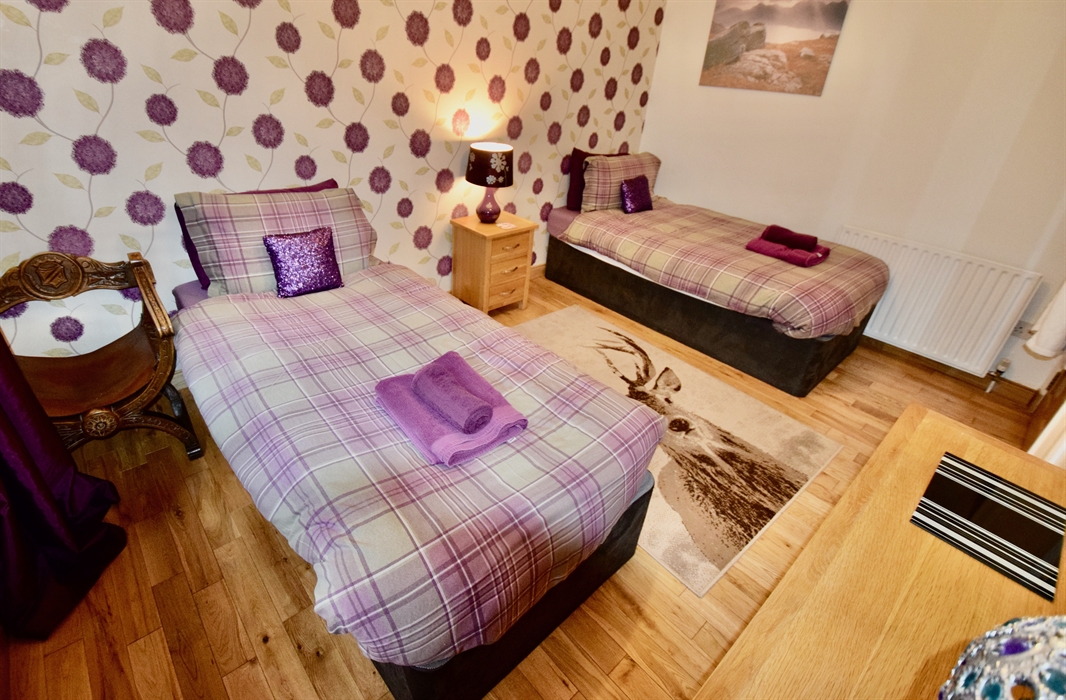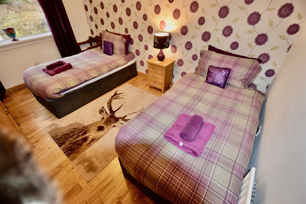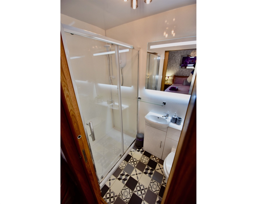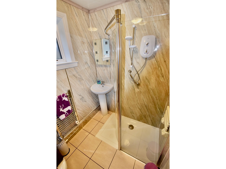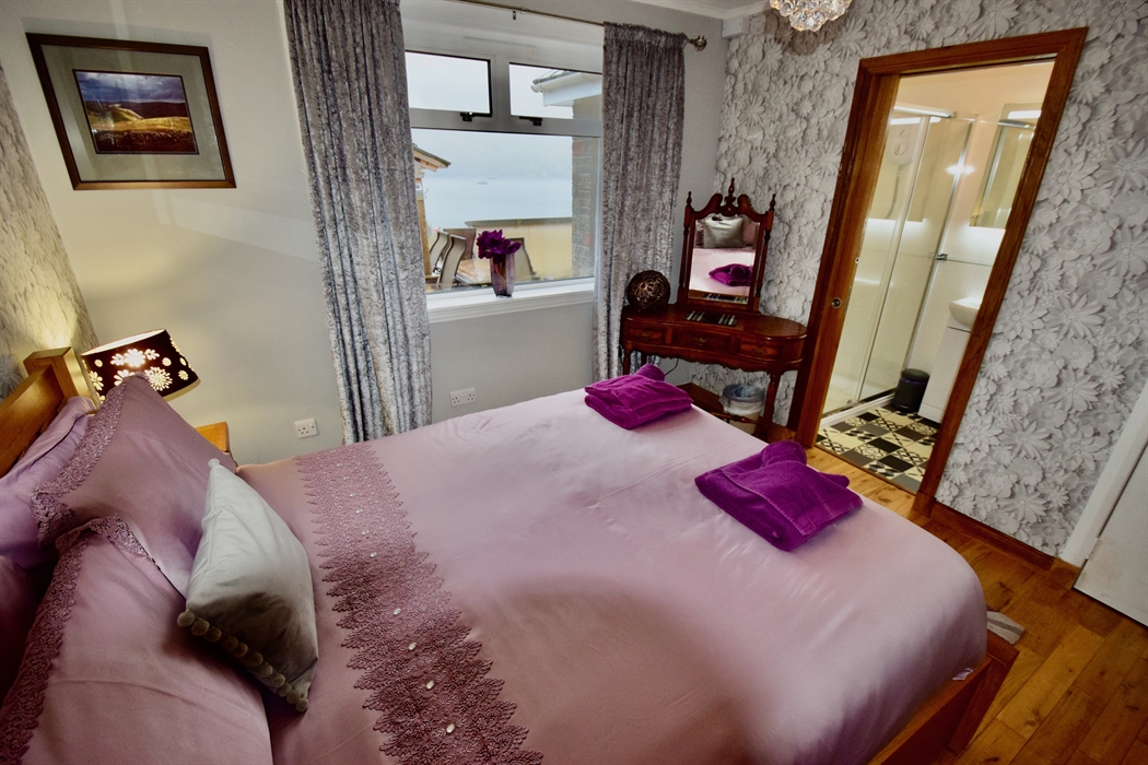 - Bedroom 2: King sized double, loch view, en-suite shower/WC
