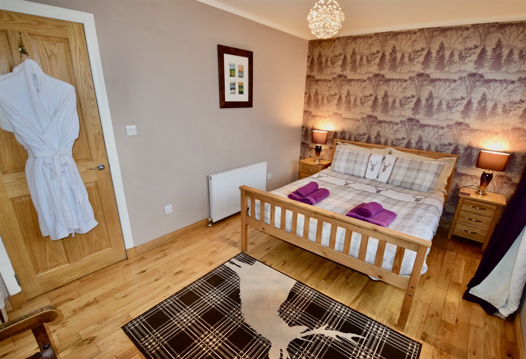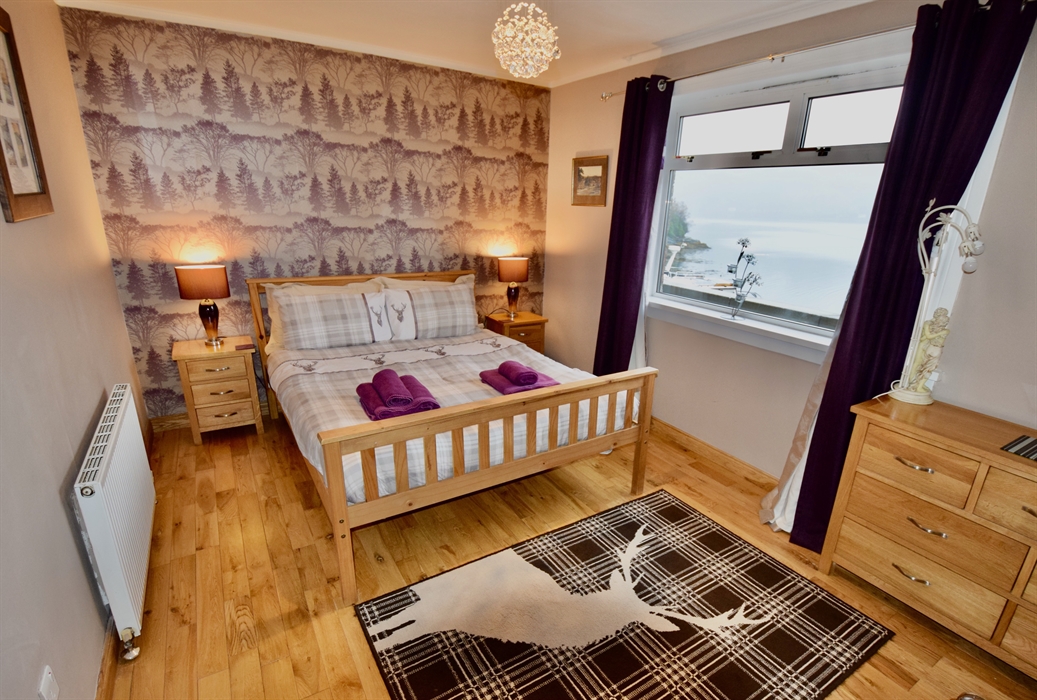 - Bedroom 1: King sized double, loch view, en-suite shower/WC