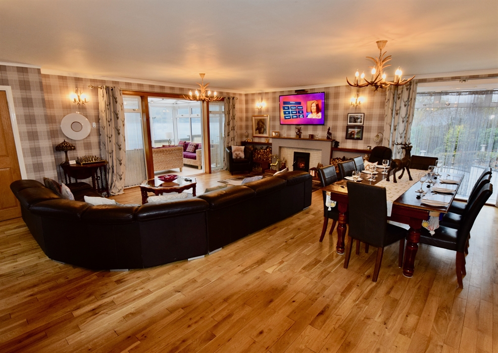 A striking feature of Jenny’s Bay is the spacious open plan lounge and dining area. Ample seating to comfortably accommodate 8 guests in an ideal social space. For non-summer visitors the wood burning stove is a welcome feature. You step out the lounge into a conservatory with views over Loch Goil as well as the hot tub and patio.