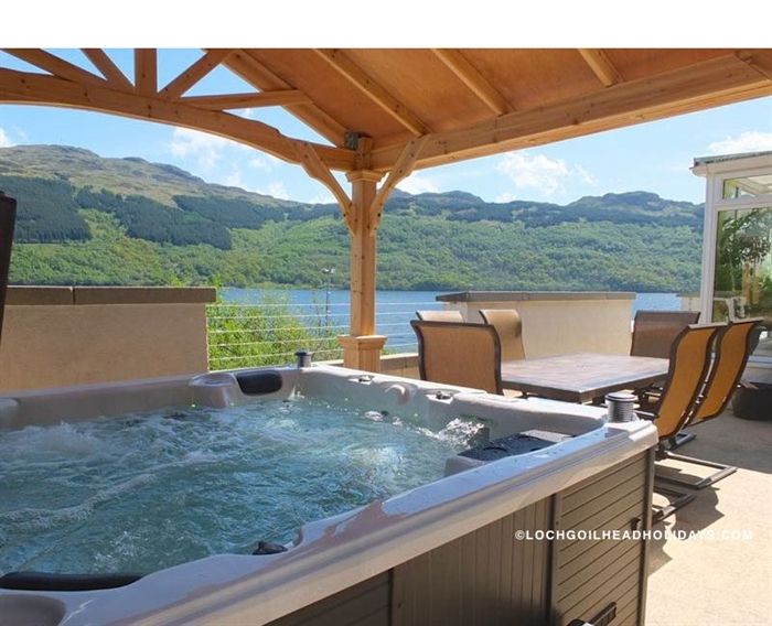 Jenny’s Bay sits in an elevated position within a large enclosed space. No garden as such as the outside space around the house has been designed for outdoor socialising in a patio area. The patio is enclosed and is suitable for young children and a dog. There is a custom built BBQ area. The hot tub, with a loch view, is under a gazebo making it perfect for all year use. You have access to the shoreline as well as a jetty. Bring your canoe, kayak or a trailer sized boat as you can launch them right from the property. Bring your binoculars. Depending on the time of year the gannets put on a marvellous display diving for fish and you can look out for seals, which are common. Porpoises are regular visitors. Loch Goil is a tidal sea loch so depending on the tide there will be a shore line to explore. This is a rural location – you will need a car. There is a taxi service in the village.