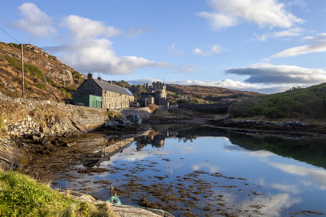 This aptly named self-catering cottage sits next to the stone jetty which is still used to this day for loading and unloading of goods from local boats, nestled within the sheltered cove next to the Amhuinnsuidhe Castle.