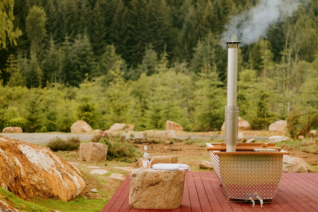 Juniper is a one-bedroomed woodland cabin perched on the edge of Cally Loch, Dunkeld. This unique cabin is home to our famous outdoor bath.