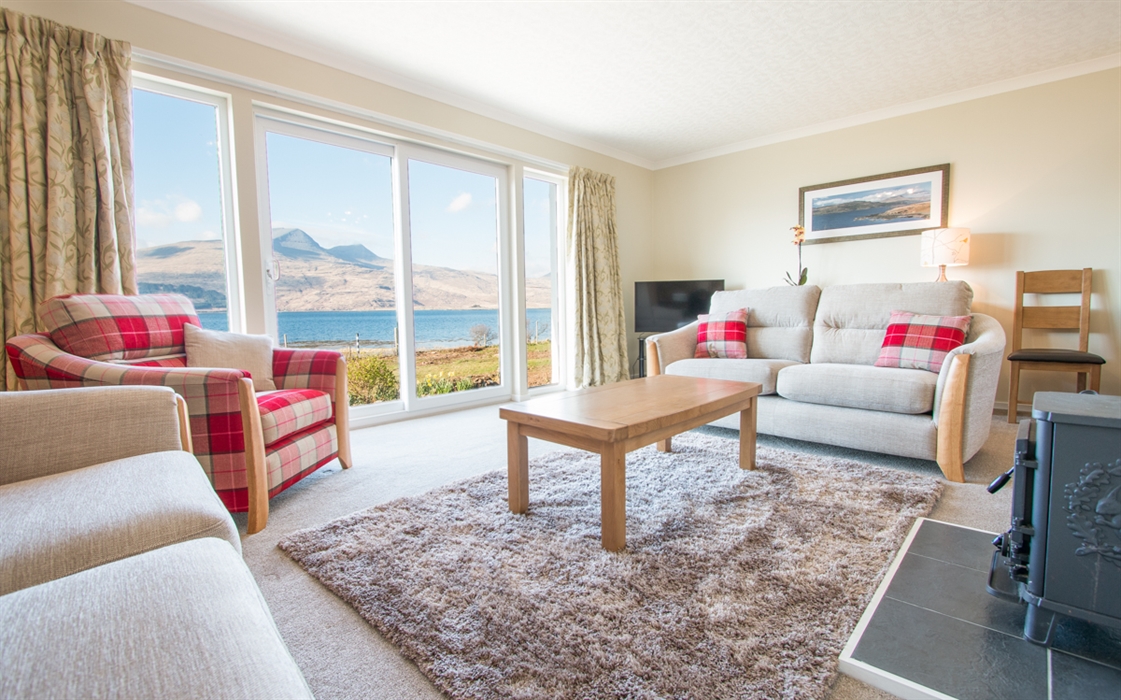 Katrine Cottage is situated on the shore of Loch Scridain with fantastic sea views looking towards the mountain summit of Ben More, Mull’s highest peak. This is an exceptional holiday cottage with quality furnishings and everything you need for a mos