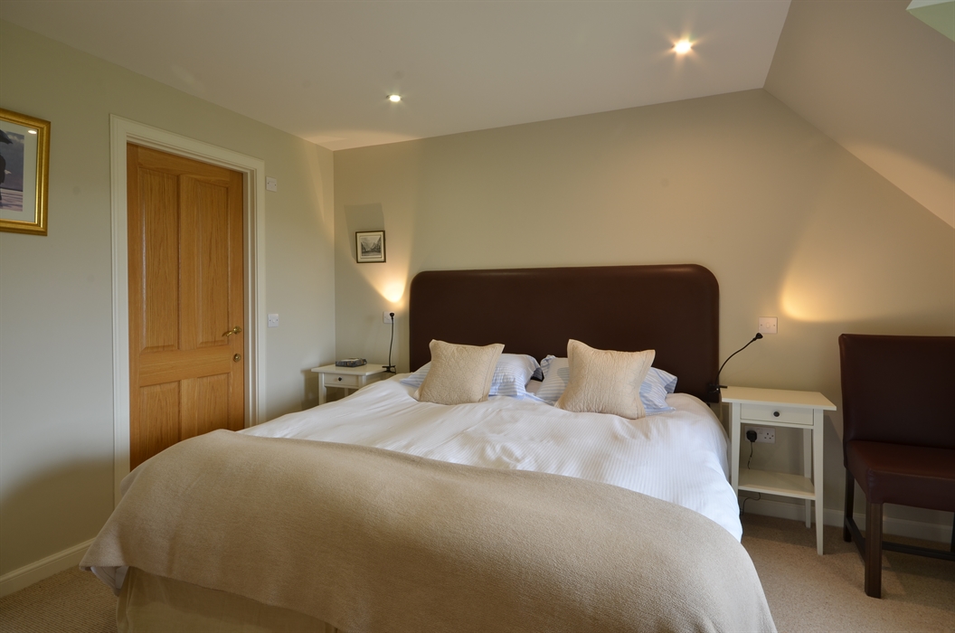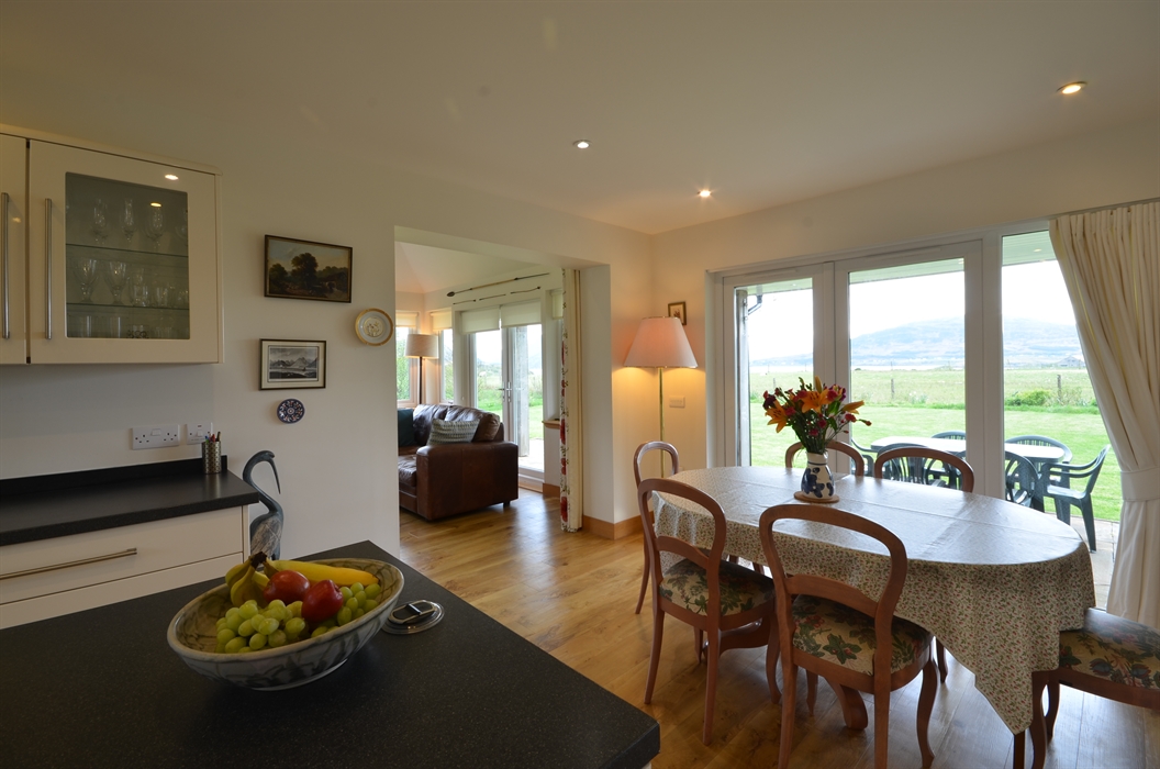 The house has been laid out with the aim of making the very most of the wonderful surrounding vistas and is bright and inviting throughout due to its semi-open plan layout. The sitting room, with its comfy seating, has windows on three sides and doors out to the garden and is joined with a wide opening to a modern dining kitchen that can be curtained off for added cosiness in the evenings.