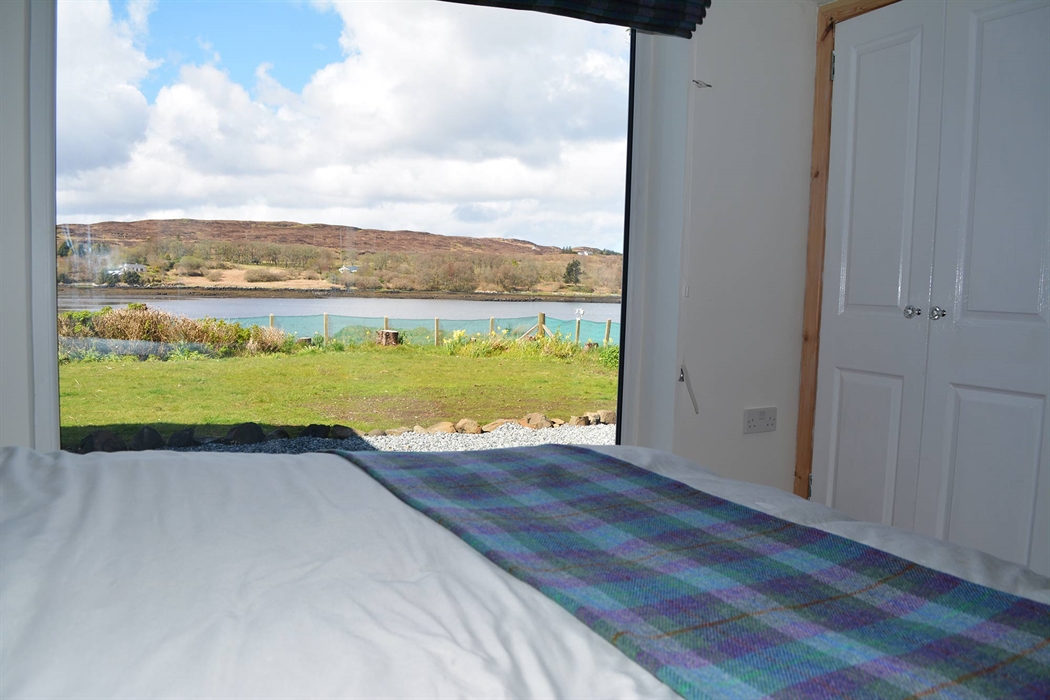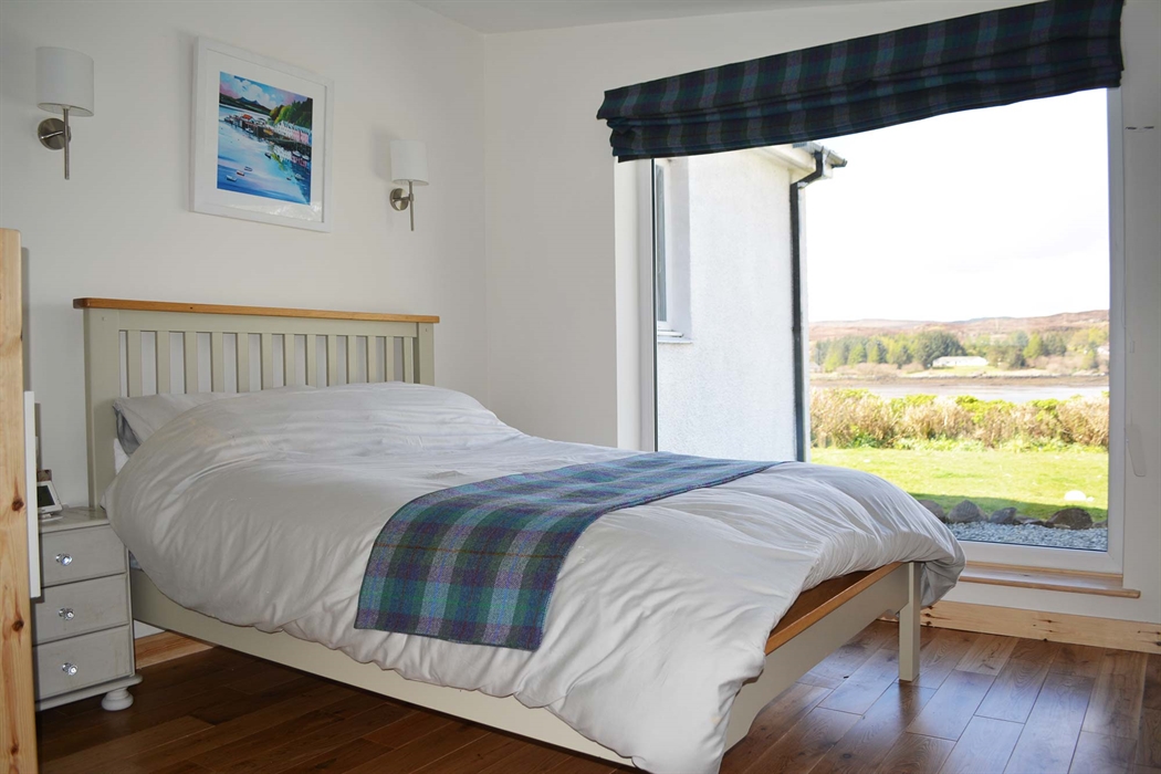 Luxury lochside bed and breakfast with picture window giving views of the loch and out to the outer isles of Harris and Lewis. Furnished with Harris tweed finishings.