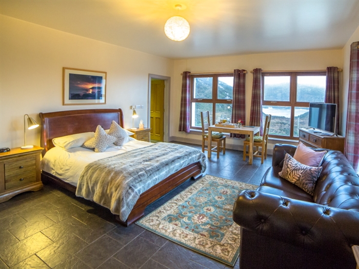 Kirkaig Lodge is set in the unspoiled beauty of Assynt Our large comfortable Bed and Breakfast with Sauna overlooks the stunning and tranquil sea views of Inverkirkaig Bay and beyond. With Suilven, Stac Pollaidh and Canisp in the backdrop and the Falls of Kirkaig just around the corner, Kirkaig Lodge is the perfect place to stay for hillwalkers, anglers, bird watchers or anyone with a love of nature!