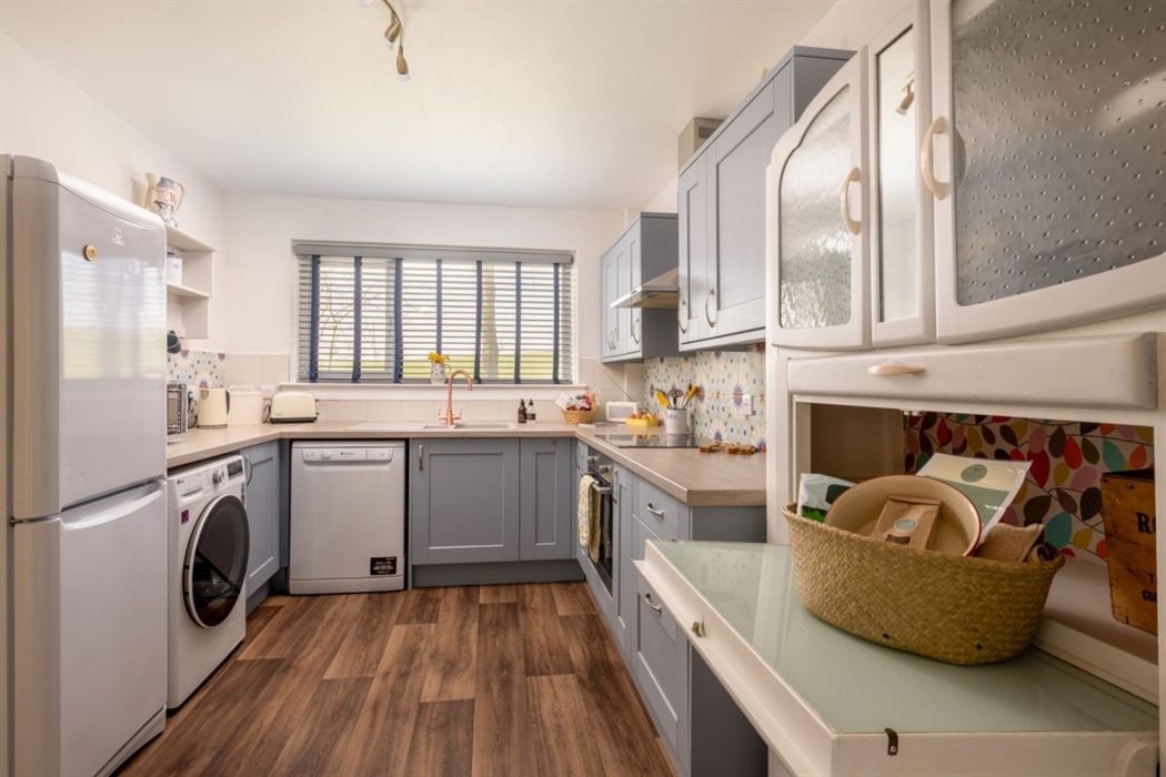 Good sized fully fitted kitchen (brand new kitchen fitted Dec 2019) with cooker, hob, fridge freezer, microwave, kettle, toaster, dishwasher and washer/drier.