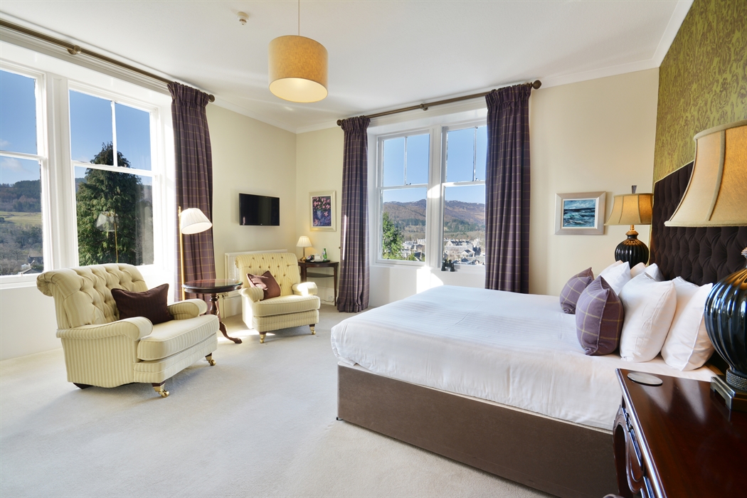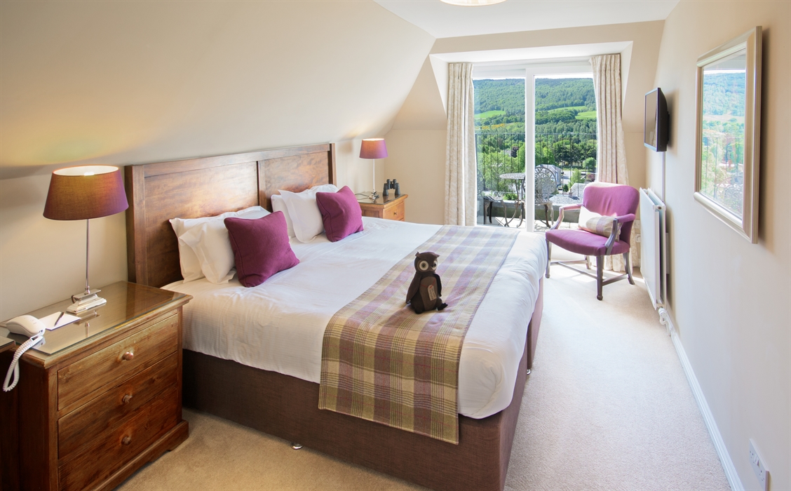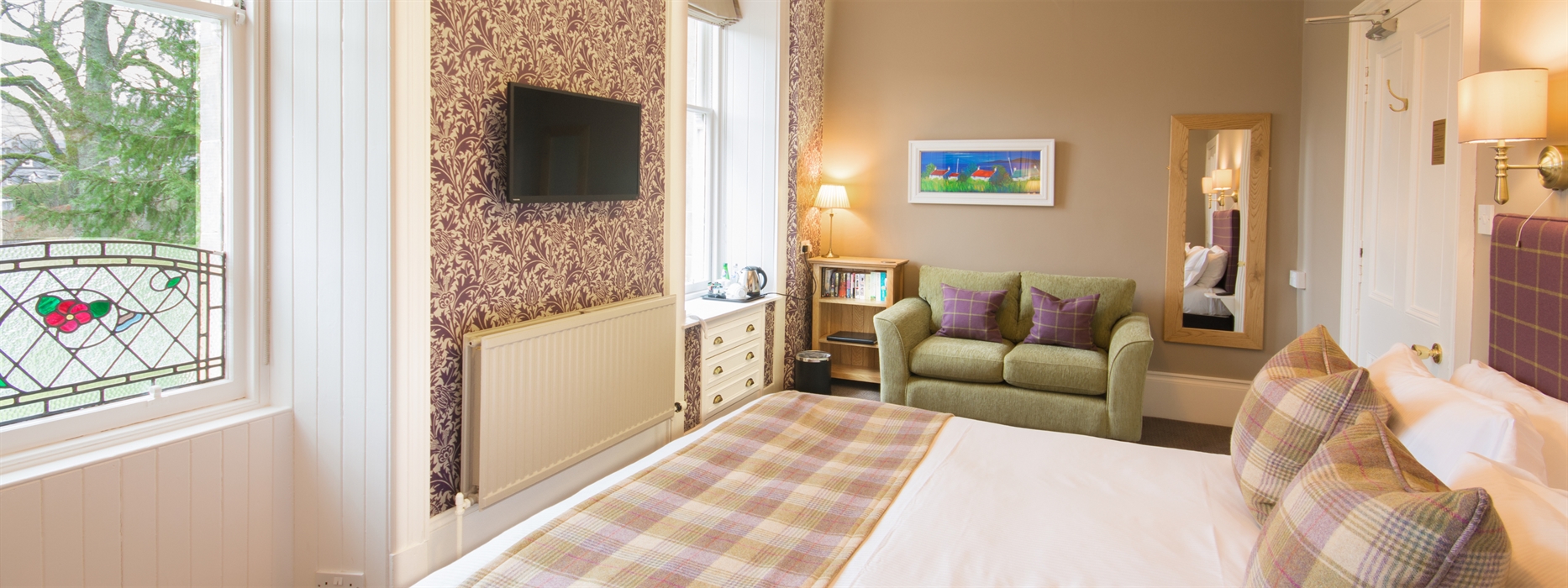 Contemporary country house style in a quiet, elevated position in central Pitlochry. Stunning panoramic views of Pitlochry and Highland Perthshire. 14 en-suite bedrooms. Comfortable guest lounges with log fires. Superb daily changing menu.