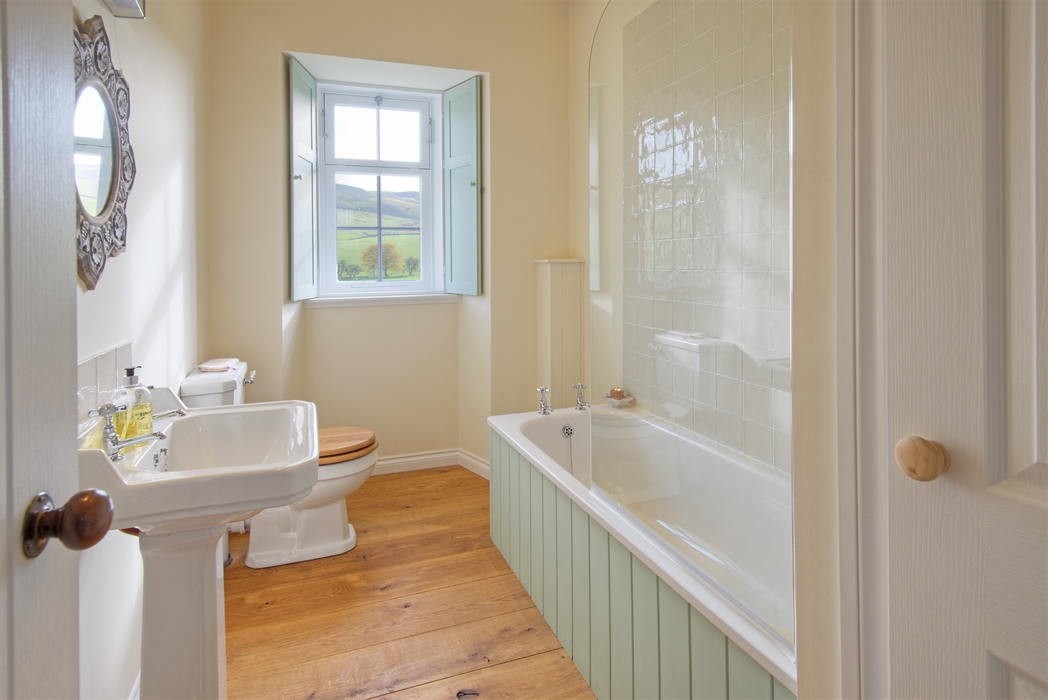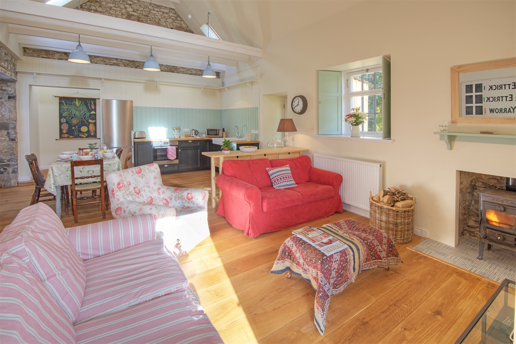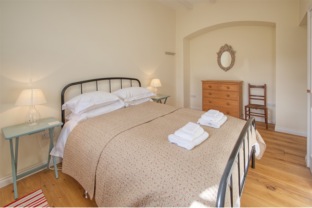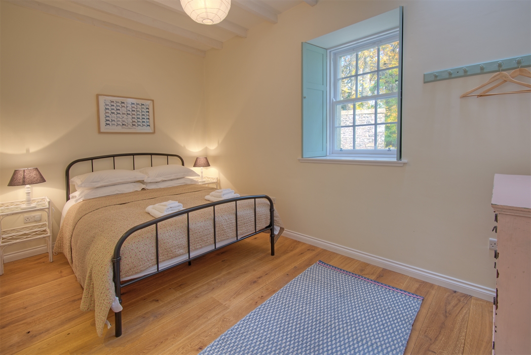 The cottage is decorated in a traditional yet contemporary feel with light bright rooms, painted wooden beams, solid oak flooring, period style shutters and a Morso Squirrel wood burning stove, complete with a full log basket. Laundry Cottage is south facing with amazing views towards Howford Hill. The perfect spot to sit back and relax!