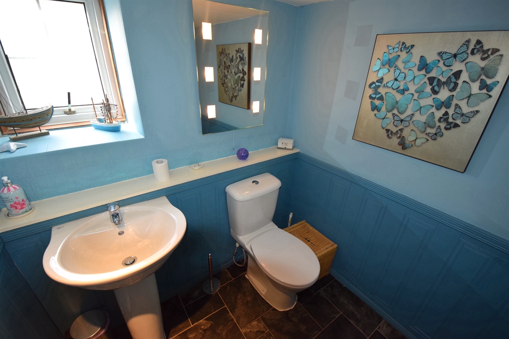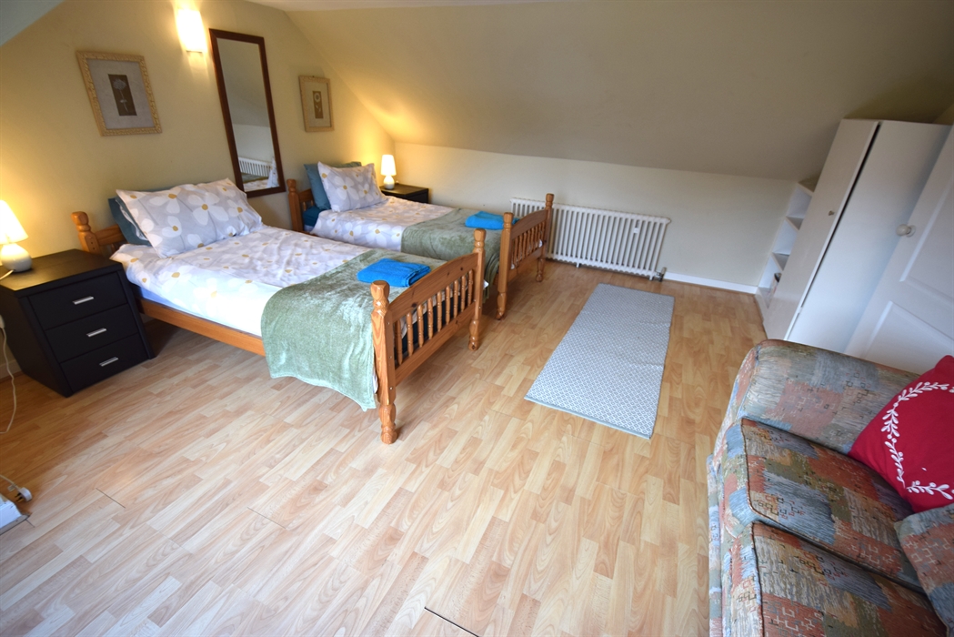 On the first floor is the main socialising room – a spacious lounge, complete with a bay window and open fire. TV. This is a wonderful room for everyone to get together and relax. There are 2 double bedrooms on this level.