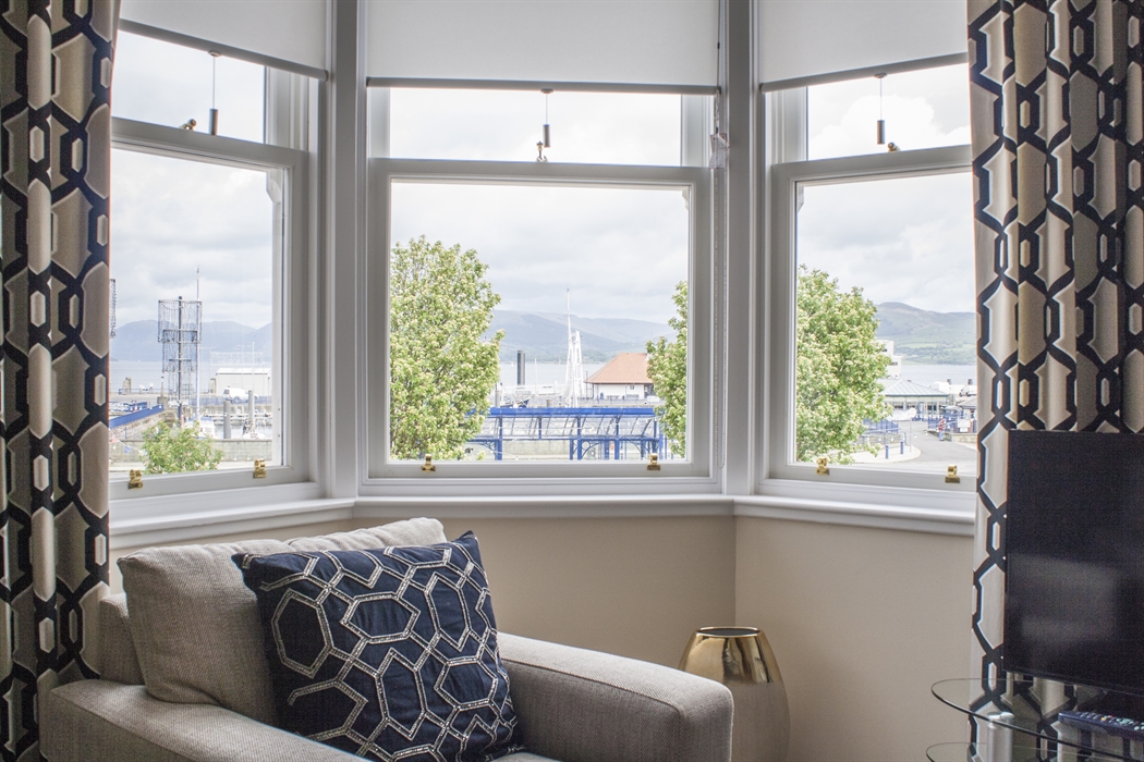 4 self contained modern, stylish self catering apartments in the centre of Rothesay with view of the harbour and the Cowal hills.