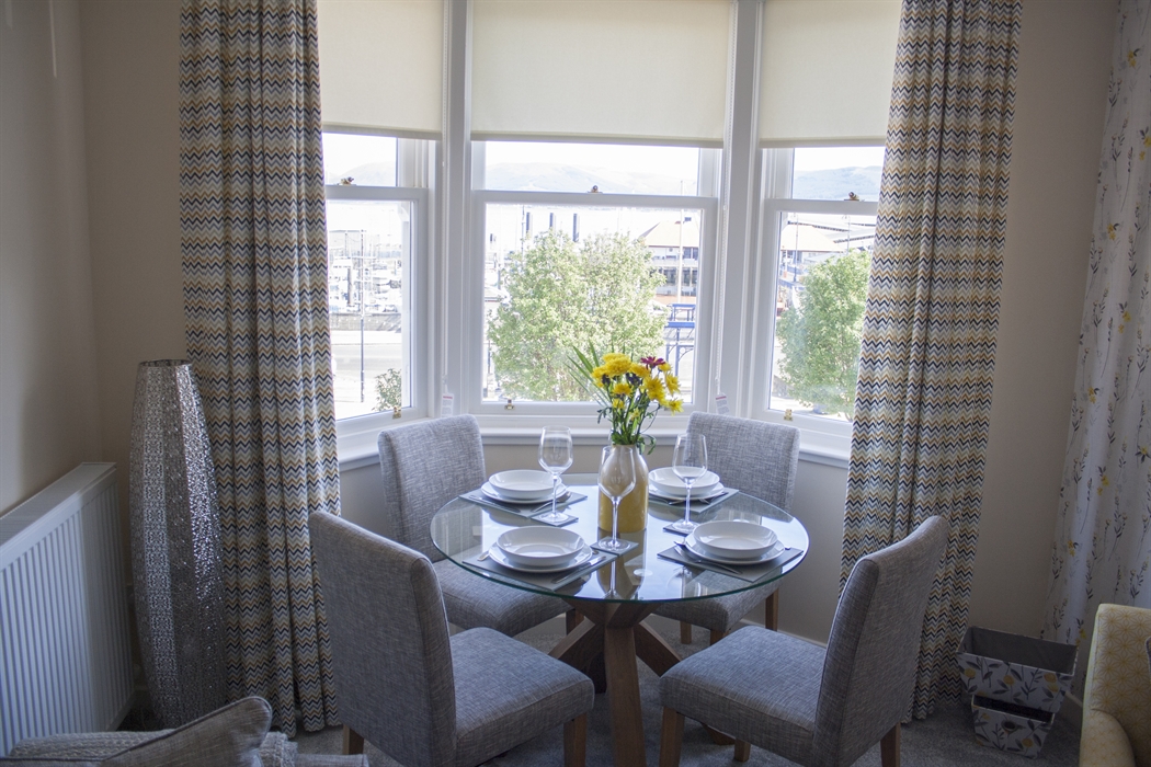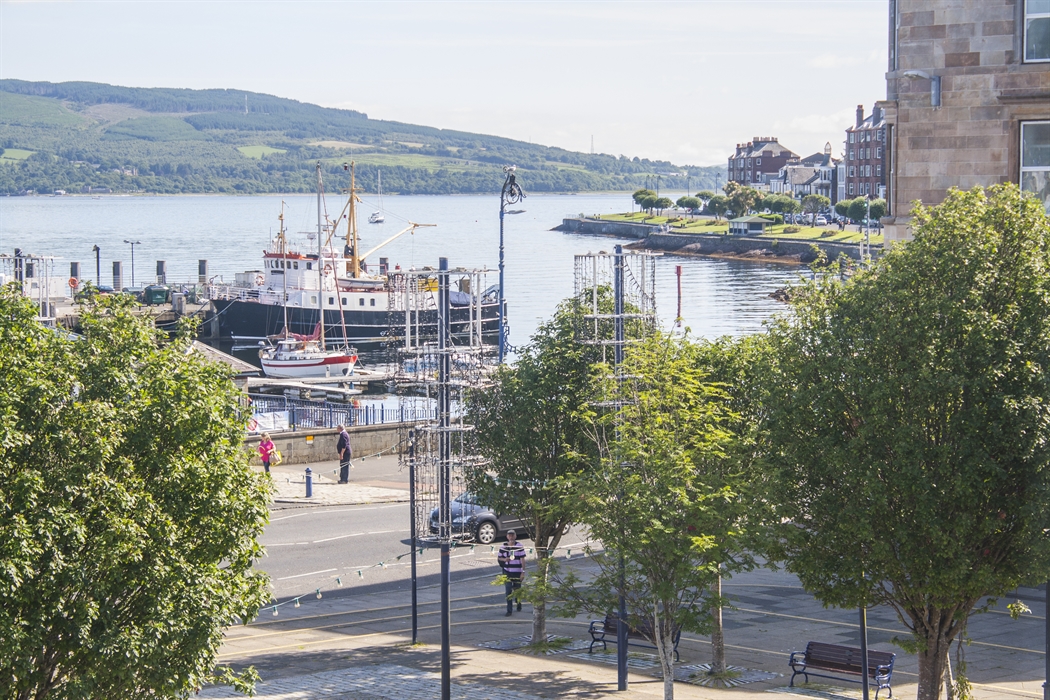 4 self contained modern, stylish self catering apartments in the centre of Rothesay with view of the harbour and the Cowal hills.