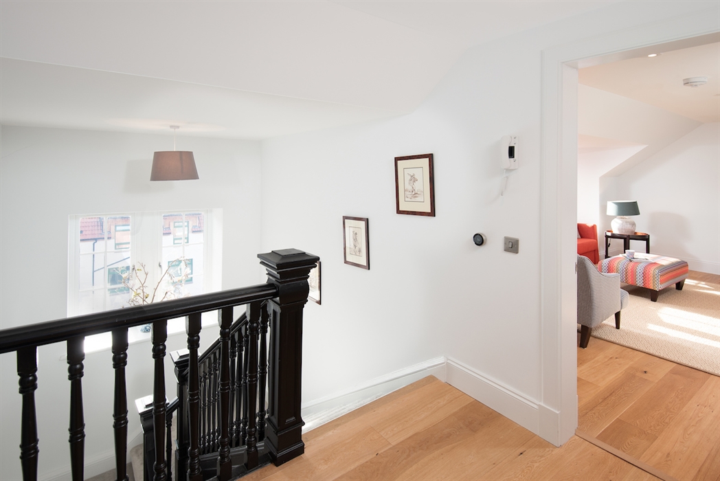 Secure access into a period building comprising a block of 4 apartments; two on the ground floor and two on the upper floor. The apartment sits on the second floor. There are two sets of stairs up to the apartment - no lift access.