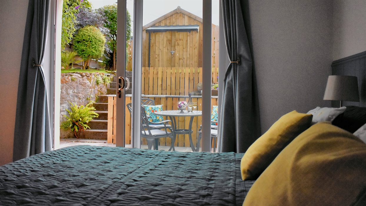 Accessed from the parking area with 2 steps up onto a paved pathway leading to the entrance door with a step up into the vestibule with boot storage and coat hooks: Open plan Living room with single sofa bed and wood Burning Stove and initial supply of logs, Designated Dining space, Fully fitted Kitchen; Main Bedroom with Zip’n’Link Super king Bed (can become twin on request), Bathroom with small bath and walk-in shower, toilet and sink, and patio doors onto private paved area which is a sun trap with outdoor seating; Secure storage for bikes, golf clubs etc.