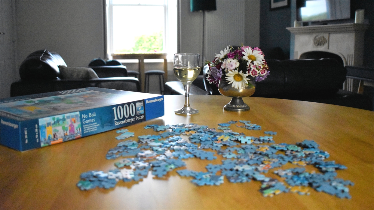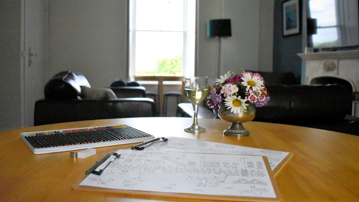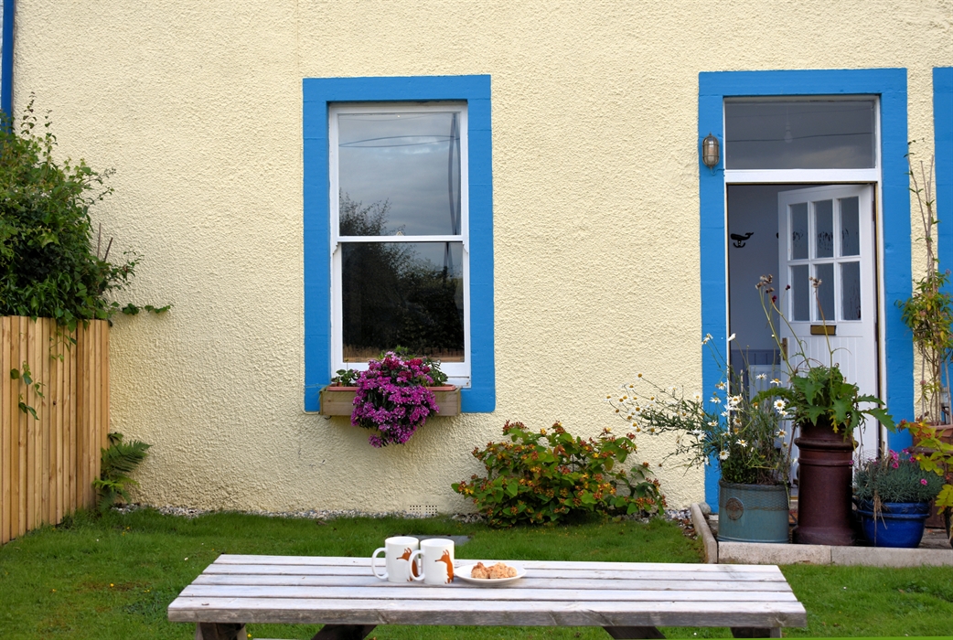 The ground-floor apartment shares the attractive front garden with the owners next door. Their friendly dog welcomes other dogs and guests. Guests can enjoy the views from its picnic bench or across the road from the property is a beach garden with unrestricted sea views. The owner, Ailsa Black, is a renowned artist trained at Gray’s School of Art in Aberdeen, where she studied Graphic Design and Illustration. Today, she works from an airy seaside studio close to the property. If guests would like a tour around the studio, Ailsa would happily provide this by pre-arrangement. Within the apartment you will find examples of Ailsa's artwork, amongst the games provided you will find some of her own design jigsaws and colouring sheets and pencils for those quieter moments.