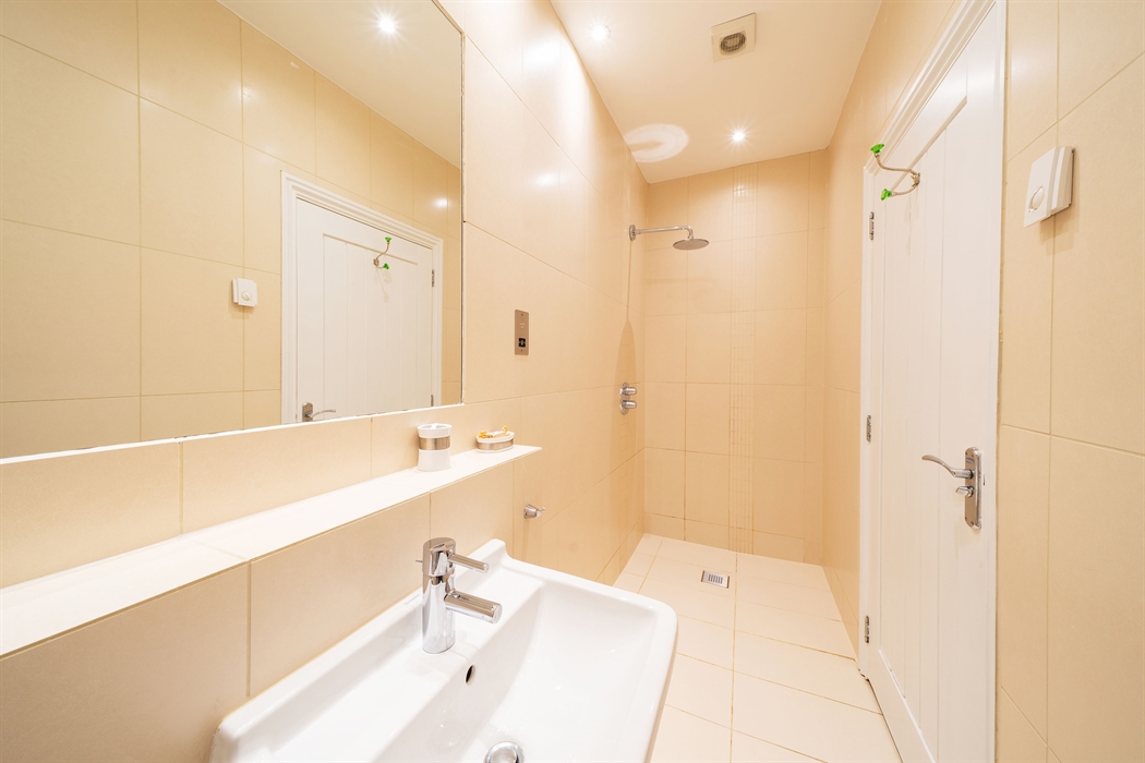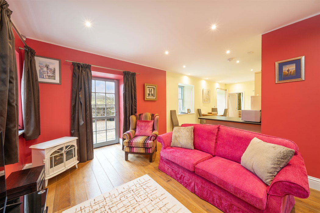 Accommodation for 2 people on the Ground Floor: Living area comprising sitting room with a single sofa bed, Dining area, fully fitted Kitchen; large walk in Utility cupboard with Washing Machine; King size bedroom with en suite wet room; Additional Shower room with walk in shower, wash basin & WC (Note occupancy a strict max of 2 people).