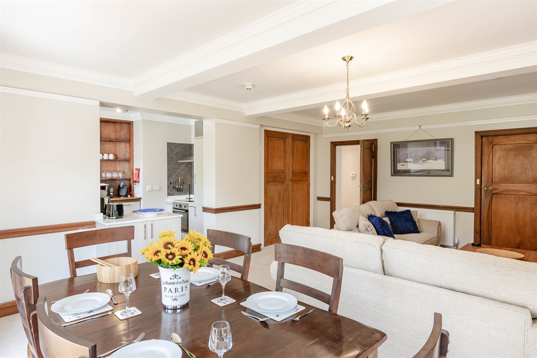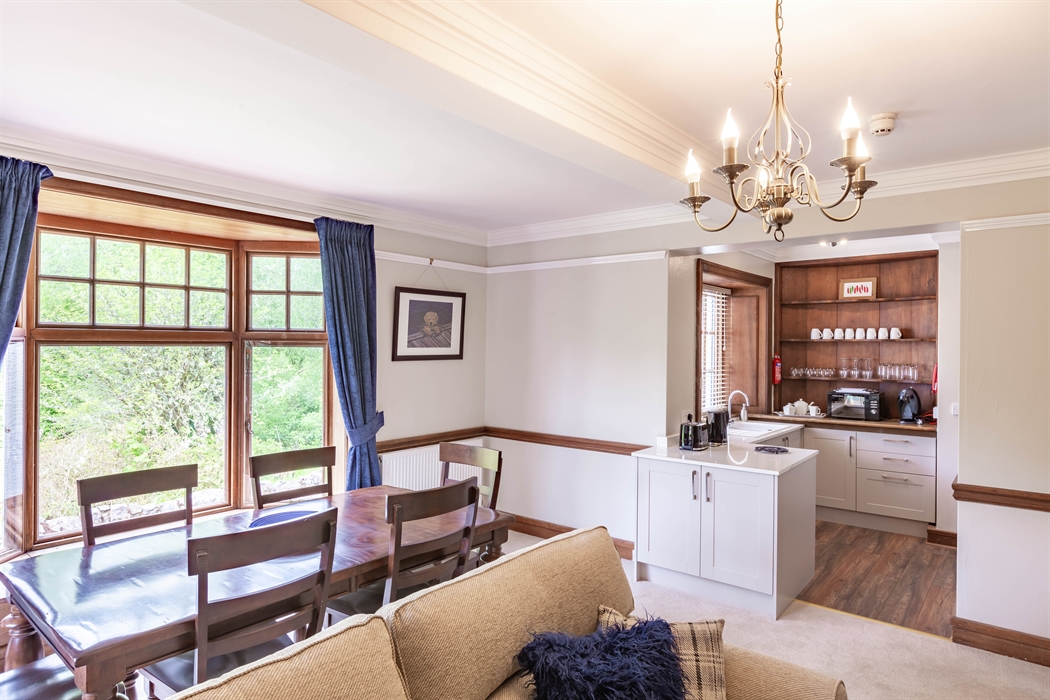 Lorimer is a large, ground floor self-catering apartment forming part of the glorious Lonan House. Fully renovated and newly decorated to a high standard, this extremely spacious one-bedroom holiday home creates an idyllic retreat for those looking to experience all this naturally beautiful area of Argyll has to offer. The large and instantly appealing open plan living room with its grand original wooden fireplace surrounded by deep sofas, generous dining area and stylish kitchen is bright and airy, yet inviting and comfortable allowing you to quickly relax into holiday mood. The super-king size bedroom is perfect for relaxed mornings, and evenings can be spent snuggled up in front of the cosy wood burning stove while enjoying a glass of wine or perhaps a local Oban malt whisky.