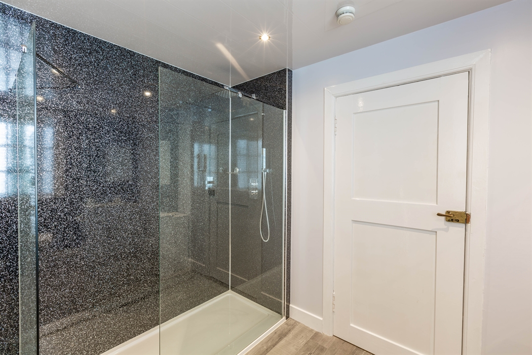 Accommodation for 2 all on ground floor; Shared entrance hall leads to Apartment Entrance with coat hanging & boot storage; Large open plan living room with a wood burning stove, dining area and kitchen; 1 Super King size bedroom, Bathroom with walk-in rain shower with hand held attachment, wc, wash basin.