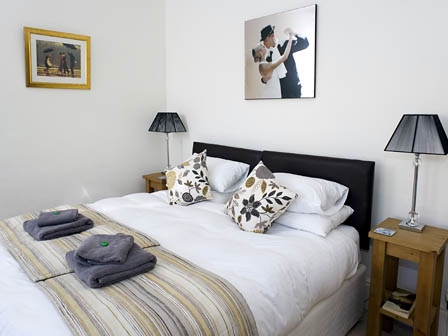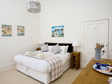First left is the airy master bedroom with bedroom two just beyond. Both bedrooms are very spacious, with high cornices lovingly furnished with super king size zip & link beds.