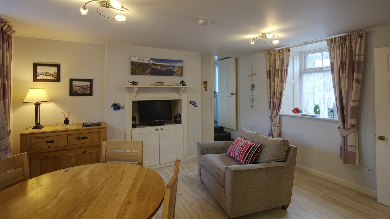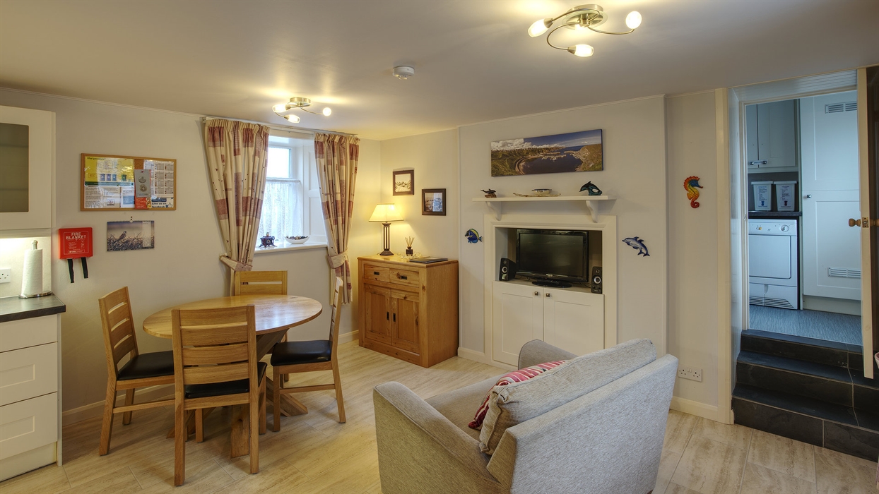 Parking is on the street outside the cottage. Unfortunately there is no garden, but the harbour view is only a few minutes walk from the front door. To the rear there is a very small space with a clothes dryer.