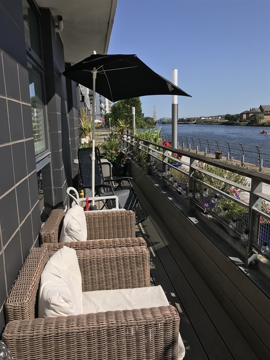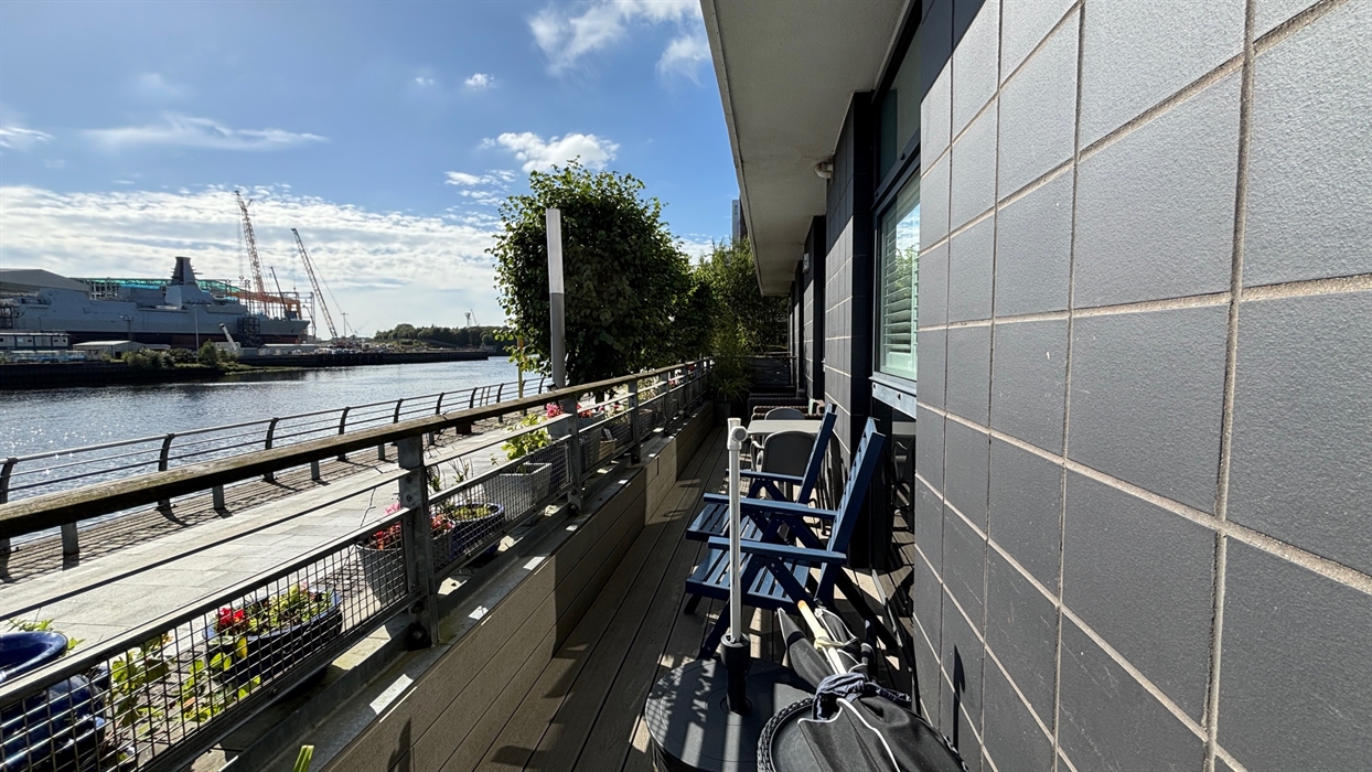 Contemporary two bed apartment. Master bedroom with en suite, second bedroom and main bathroom. With a 10 metre south facing balcony overlooking the River Clyde. Only 2 kilometres from the Hydro and the SEC and close to the west end and Finnieston.