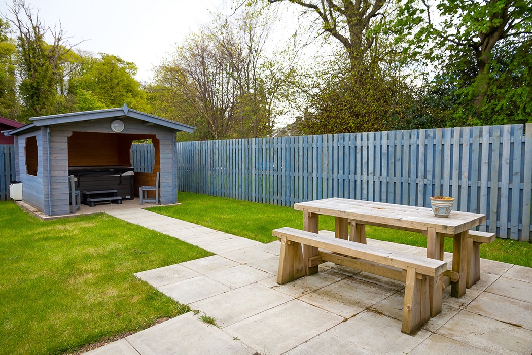 - Private rear garden with covered outdoor hot tub, pizza oven and patio area with outdoor furniture, ideal for watching the East Lothian dark skies