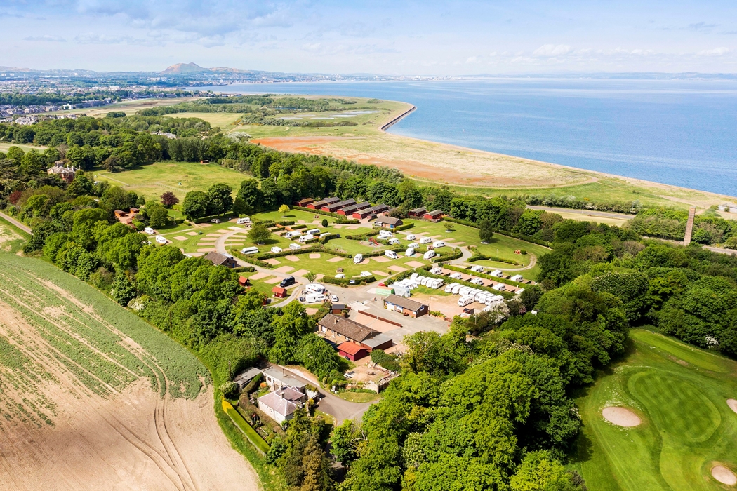 Drummohr Camping and Glamping site is a picturesque site located in the grounds of an old monastery, near the shores of the Firth of Forth. Encircled by trees and beautifully landscaped there are partial sea views across to Fife.