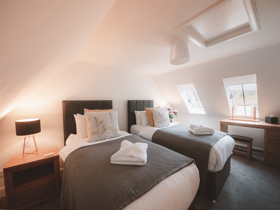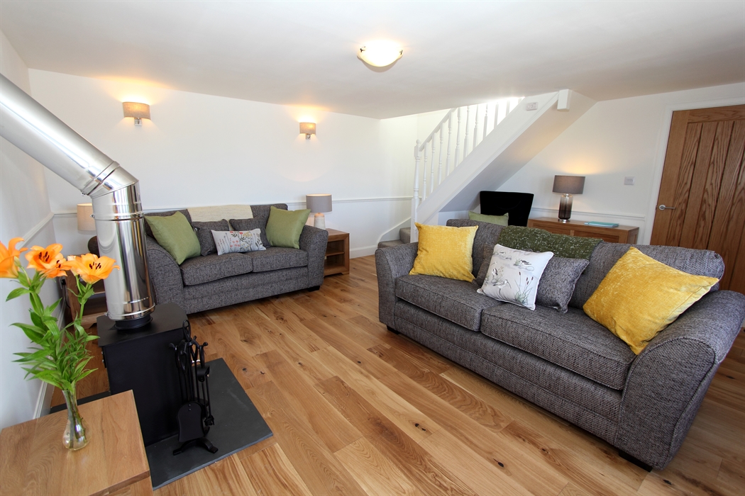 Sleeps 5 Charming family cottage on two floors • One luxury ensuite king-sized bedroom. • One luxurious twin bedroom. • One single luxury bedroom. • A large family bathroom. • A fully equipped kitchen/dining area. • A cosy living room with a wood-burning stove. Cot and highchair available on request. This cottage is pet friendly. Flora’s Secret is a traditional stone-built cottage restored to an exceptionally high standard, providing luxurious accommodation for up to 5 people, it is the perfect lodge for that special family break, or that weekend away with good friends. With views across the ancient courtyard from the ground floor and breathtaking sea views on the first floor.