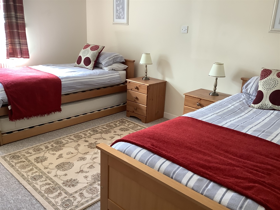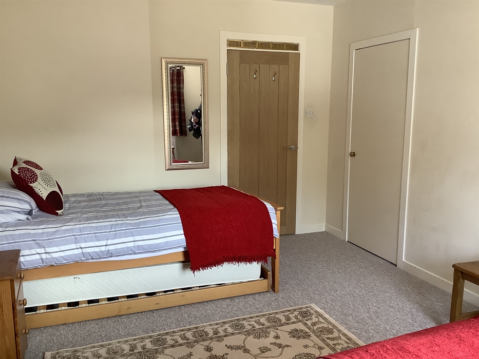 Accommodation for 4 all on one floor but with steps to front door and to garden: Front Vestibule; Sitting room with dining area; Kitchen; 1 Double bedroom; 1 Twin bedroom; Bathroom with over bath shower; Utility room.