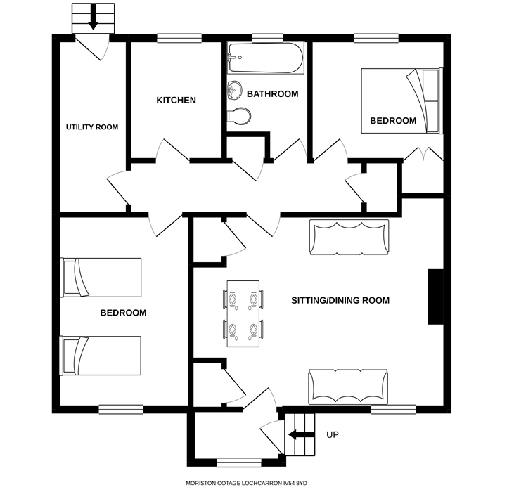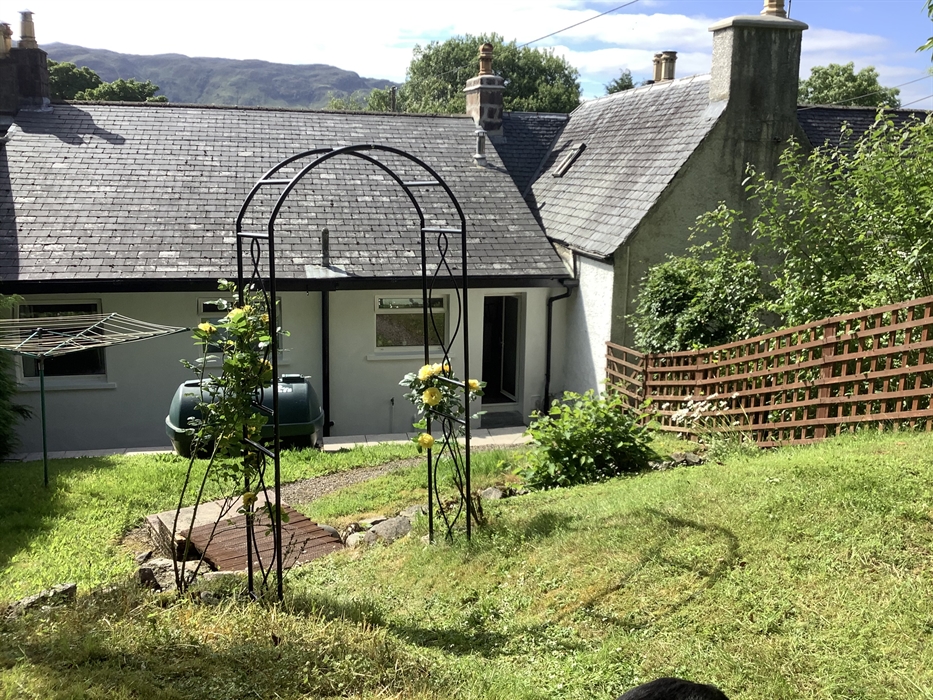 The traditional terraced highland cottage provides spacious accommodation on a single level for up to 4 people. The layout makes it a comfortable home from home with oil-fired central heating, modern kitchen, a comfortable sitting/dining room and free WiFi. There is a quiet private garden reached by a flight of steps at the rear of the cottage making a pleasant place to sit and enjoy the evening sun. The utility room provides plenty of space for hanging outdoor kit whilst the front vestibule provides more coat hanging and room for golf clubs/fishing rods and other essentials.