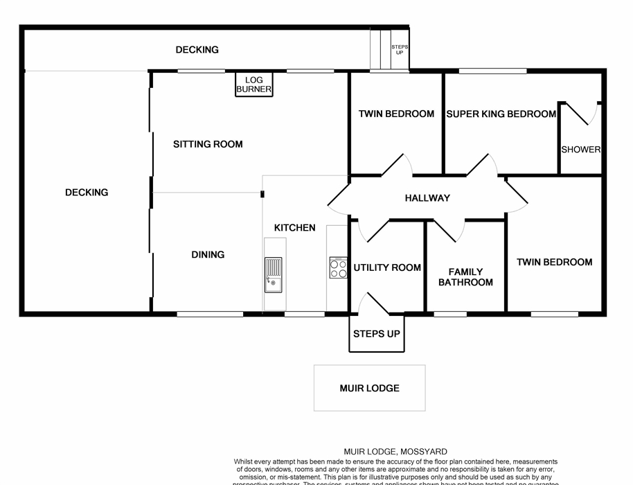 Accommodation for 6 on one level: Open plan Kitchen/Living/Dining, Super King Master Bedroom with En-suite Shower Room, 2 x Twin Bedroom, Bathroom & Entrance/Utility Area.