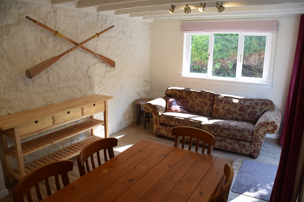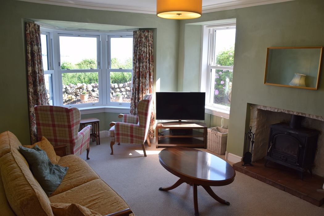The main living rooms along with most of the bedrooms all have sea views and the traditional construction makes it a light and airy house with good sized rooms ensuring space for all even with large groups. The separate Dining room makes a comfortable space for special parties while the spacious layout of the kitchen includes a dining and family seating area for relaxed living. The sitting room’s bay window makes a lovely spot from which to enjoy the view over the sandy cove while the wood burning stove makes it snug and cosy in winter after a day out exploring the local area.