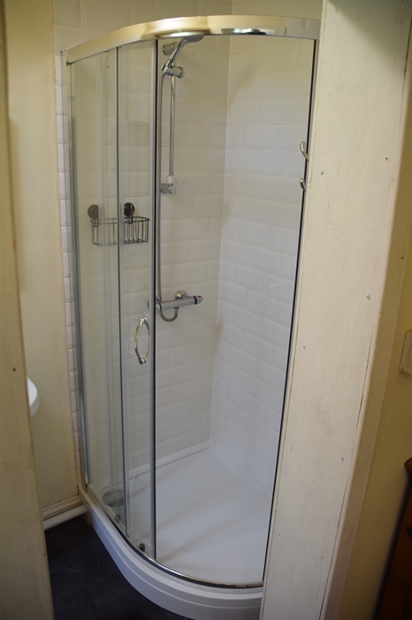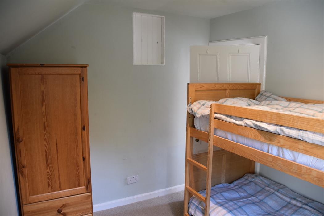 Mezzanine Floor: off stair 1/2 landing Bunk bedroom with full size bunks; Family bathroom with over bath shower