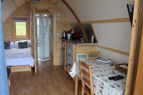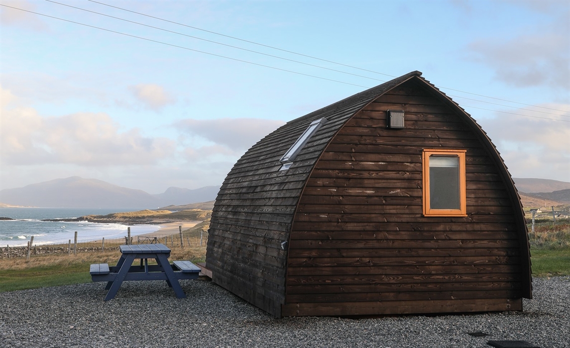 Sandy Bay Croft wigwams, Na Bothain (Scottish Gàidhlig- huts) are two Deluxe, en-suite Wigwams and an en-suite Shepherd's Hut set on a working croft in the picturesque Hebridean village of Scarista. The site was Runner up in the Scottish Outdoor & Leisure Awards 2019.