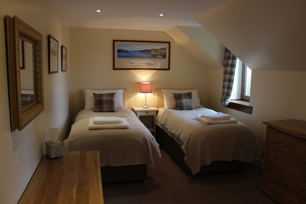 Each of the spacious, two bedrooms have twin zip and link hotel style hypoallegenic beds which, with notice, can offer four single 3 foot wide beds or 2 super kingsized beds.