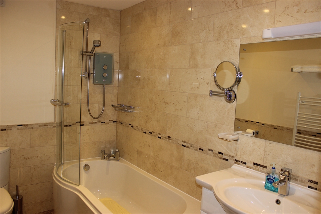 Pamper yourself in the tastefully decorated bathroom, equiped with the latest thermostatic electric shower, 'p' shaped bath, shaving socket point ,vanity mirror and Egyptian cotton towels.