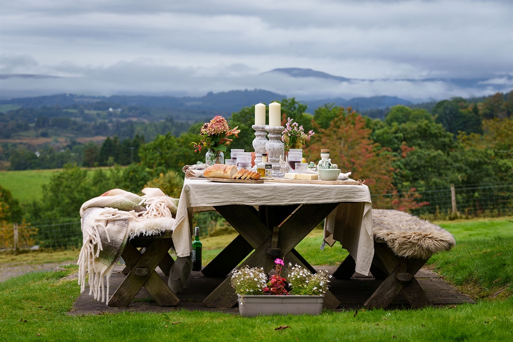 Our guests have access to The Nether Glenny Pantry, our cosy cabin, complete with a roaring log fire, a blue tooth speaker and also to our new shared recreation area ( Spring 2026 ) Inside The Pantry you’ll find some classic board games, tea, coffee and biscuits in a jar and there are cosy blankets to use outside on the deck. Guests can order dinner from our website and collect their dishes from The Pantry. We also keep The Pantry stocked with soft drinks, tasty snacks, crisps, excellent souvenirs, Highland Cow gifts and lots of other goodies which are available to purchase from our website.