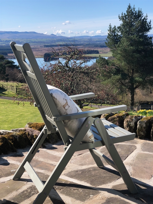 The cottage has a fully equipped kitchen, bathroom, sitting room and bedroom with King-sized bed. From the dining room, doors open on to a patio where you can soak up the views of the Lake of Menteith, read a book or enjoy a drink while the sun goes down. A wood burning fire, lush accessories and soft furnishings make this cottage really cosy. The bedroom sleeps two adults in a king size bed and an infant bed / cot can be set up. Kestrel’s beautiful bathroom has a full bath, shower and underfloor heating.