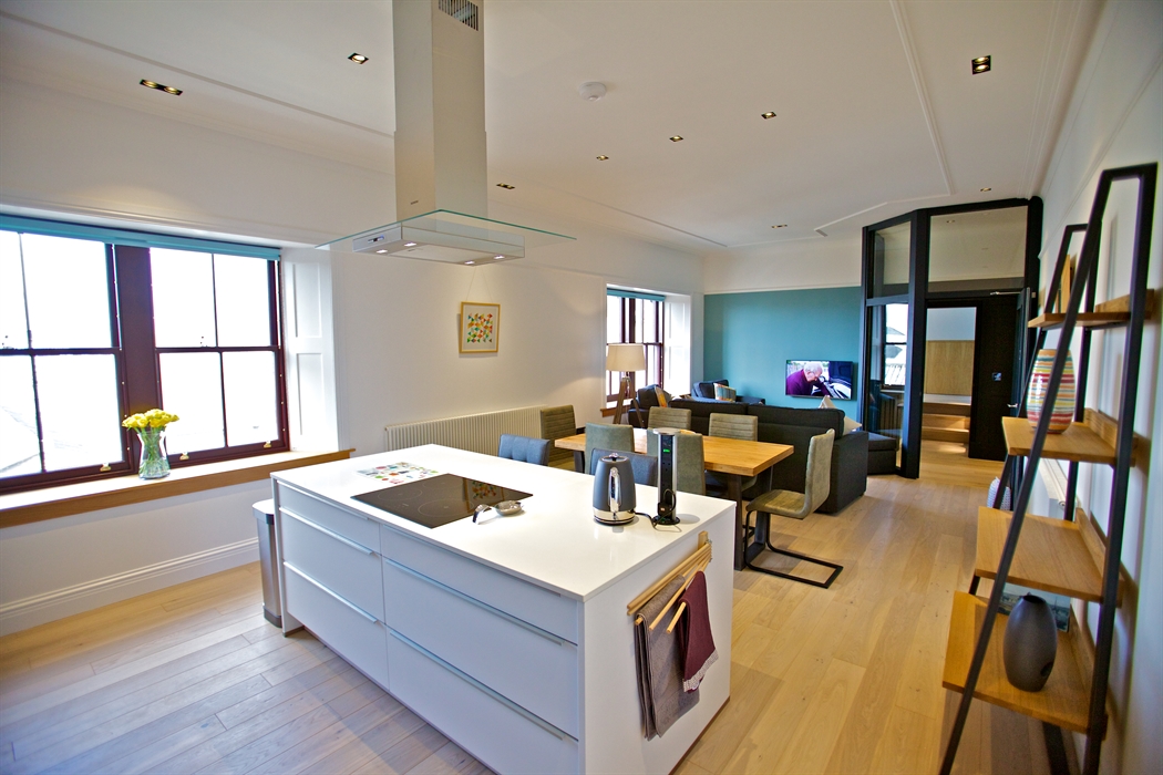 THE LOOM - Reflecting the heritage of the building as a tweed factory, The Loom offers ideal family accommodation with a kingsize bedroom en suite and a twin room with separate shower room. Large windows in the open plan kitchen/dining/living area fill the space with natural light. For more information visit the Loom page on our website.