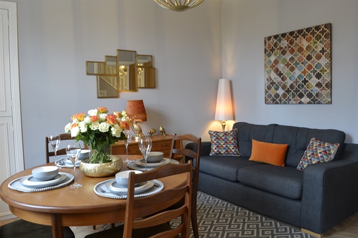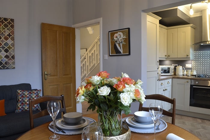 Number 3 @ Victoria is quite simply a beautiful, stylish holiday property where you will feel at home. It is warm and welcoming, bright and airy, and all rooms are fitted with USB sockets for charging all of those devices and gadgets and Wi-Fi throughout the house. From the Hallway there is a comfortable sitting room with cosy sumptuous sofas and lovely stylish and tasteful décor, the room has stunning original cornice and picture rail detail. It includes a living flame fire, 50-inch widescreen smart TV equipped with SKY TV and Netflix package.