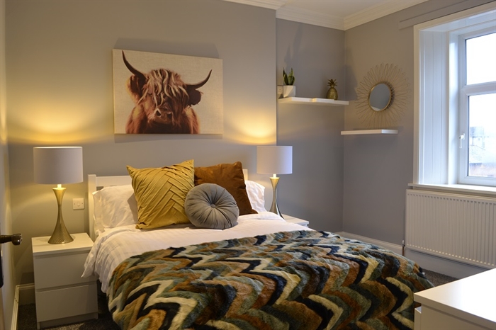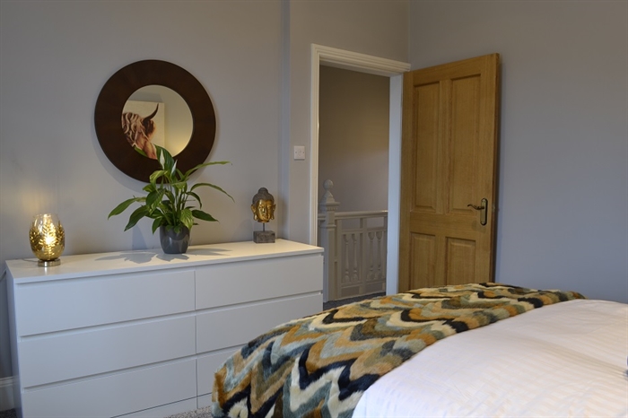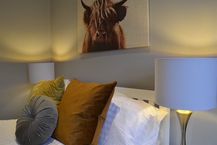 The hub of the house is the open plan kitchen/dining/family room which overlooks the rear enclosed private garden. Again the décor in here is quite simply stunning and this living space is perfect for socialising and spending family time! The dining table extends to comfortably seat six people and the brand new well equipped designer kitchen has everything you need at your fingertips to cook a delicious family meal. If however you don’t feel like cooking after a busy day exploring beautiful Dumfries and Galloway then there are numerous restaurants and take away facilities nearby.