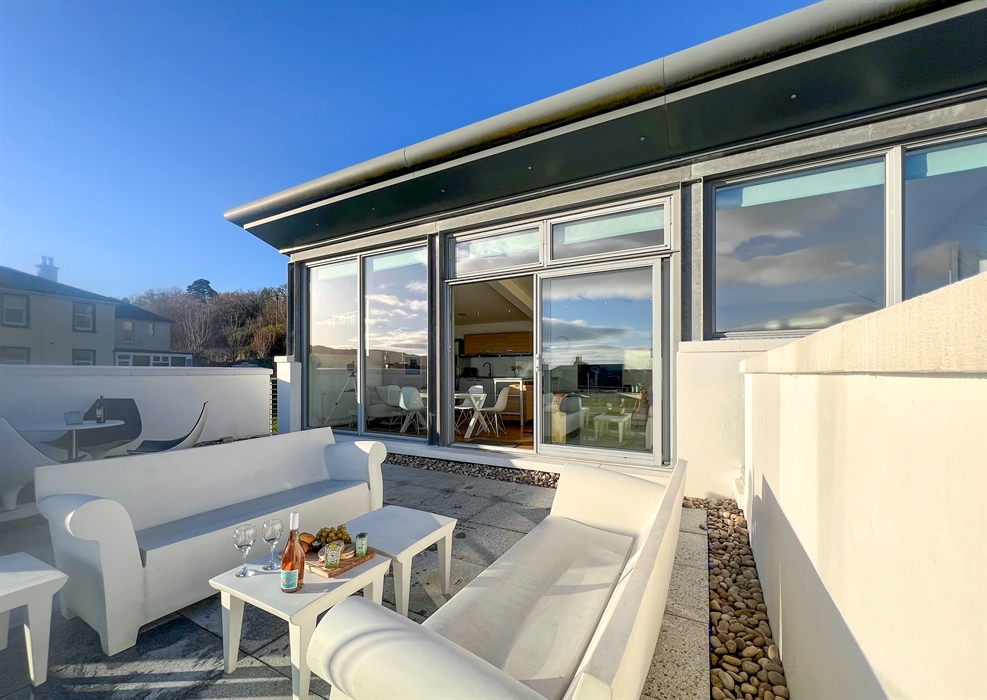 From the living space step outside to the balcony terrace, complete with outdoor furniture, mood lighting and magnificent views to admire. Ideal for alfresco dining.