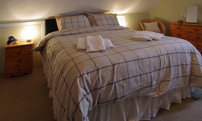 Upstairs is a large bedroom, with a generous king sized bed which emanates cosy comfort. There is plenty of hanging and drawer space, as well as a hair dryer and clock/radio with iPod dock. Wake up to your own soundtrack! The en-suite shower room incorporates a WC, wash-hand basin, heated towel rail and spacious shower.